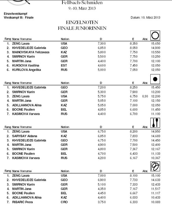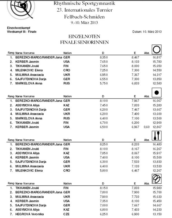 8 - 9 марта в немецком Шмидене состоялся международный турнир по художественной гимнастике по программе сеньорок и юниорок в индивидуальном первенстве. Среди сеньорок лучшей была Яна Березко-Маргграндер из Германии, которая победила в многоборье и трех финалах. Второе место за Юки Тикканен (Финдляндия), третье за Жасмин Кербер (США).