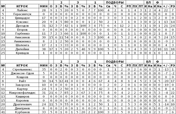 Неплохо сыграл в атаке в дебюте заключительного игрового отрезка Анисимов. Центровой «строителей» дважды продавил под кольцом опекуна и хозяева вновь вернули себе более комфортные +10. Закрепить собственный успех команде Багатскиса не удалось. Картер и Райт установили счет на отметке 59:54, сохраняя все шансы для «Спартака» на возможный успех в двухматчевом противостоянии с украинским клубом. В нужный момент в игру включились Дилейни и Лайонс. Именно результативная игра этого дуэта в концовке встречи принесла «Будивельнику» желаемы результат. Трудовые +17 подвели итог киевского противостояния, которое подарило представителю украинской Суперлиги путевку в полуфинал. В следующем раунде соперником «строителей» станет испанский «Бильбао».