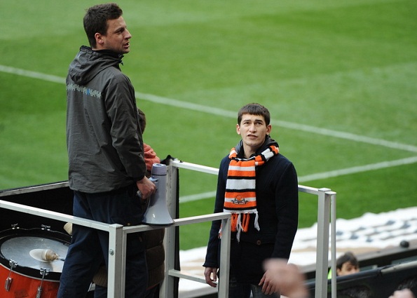 Трибуны встретили своего кумира громогласным скандированием «Степаненко», а футболист, едва зайдя на сектор, тут же отправился на вышку, откуда должен был командовать общими действиями ультрас-трибуны. Для поклонников «Шахтера» не секрет, что вместе со стартовым свистком арбитра над «Донбасс Ареной» звучит легендарная для нашего края песня «Спят курганы темные». «Заряжать» ее и было доверено Тарасу, а со своей миссией тот справился отлично, от первого до последнего слова пропев в рупор все три куплета! Так что запевал стадион в Донецке сегодня под началом Степаненко.