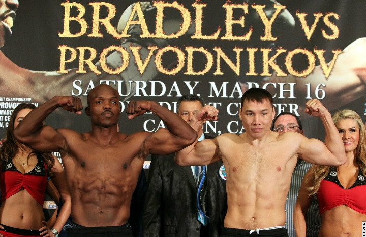 Вчера в Лос-Анджелесе состоялась официальная процедура взвешивания перед поединком 29-летнего российского боксера Руслана Проводникова (66,5 кг) против чемпиона мира в полусреднем весе (66,7 кг / 147 фунтов) по версии WBO 29-летнего американца Тимоти Брэдли (66,5 кг).