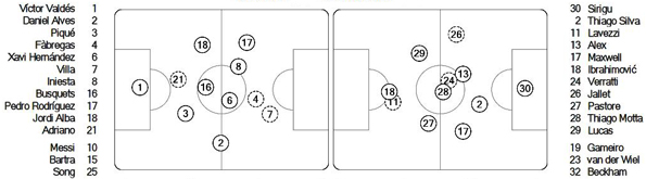 «ПСЖ»: Сальваторе Сиригу, Алекс, Кристоф Жалле, (Грегори ван дер Виль, '88), Максвелл, Тиаго Сильва, Марко Верратти, (Дэвид Бекхэм, '83), Лукас Моура, Тиаго Мотта, Хавьер Пасторе, Златан Ибрагимович, Эсекьель Лавесси, (Кевин Гамейро, '82).