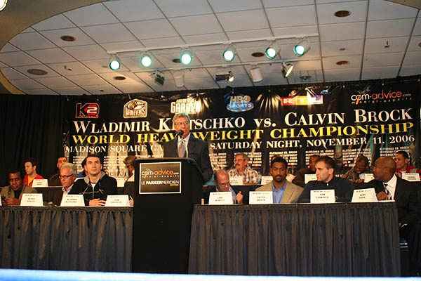 Ровно в полдень в зале появились Владимир, сопровождаемый Эмануелем Стюардом и Виталием, а также Калвин Брок с Томом Янкелло и своим отцом Калвинсом. Владимир и Калвин сразу же попали в два плотных кольца журналистов. После минут пятнадцати такого общения, было объявлено о пятиминутной готовности к началу пресс-конференции, а появление на сцене Майкла Баффера, красноречиво подтверждало тот факт, что она вот-вот начнется.