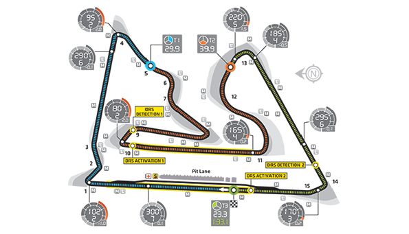 Обганяти в Сахірі є де – цьому сприяють три прямі, що закінчуються повільними поворотами, ну і не варто забувати про дві зони активації DRS на трасі. От тільки вибір FIA першої такої зони між 10-м і 11-м поворотами є доволі несподіваним, адже ця пряма є найкоротшою з чотирьох. З іншого боку, обганяти перед 11-м віражем буде не так просто.