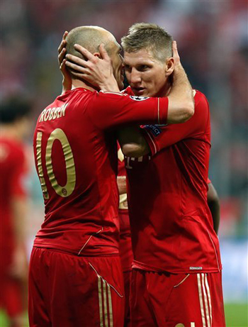 В «Баварии» больше всех запомнился Мюллер. На его счету дубль, голевая передача и еще парочка угроз воротам Вальдеса. Хорош был и Роббен, выступивший запевалой мюнхенских атак и участвовавший в трех забитых голах. Отмечу также Данте, надежно отыгравшего в обороне и успешно подключавшегося к стандартам.