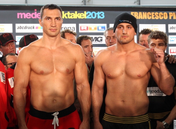 Состоялось взвешивание участников завтрашнего вечера бокса в немецком Мангейме. Владимир Кличко оказался немного тяжелее противника, итальянского немца Франческо Пьянета. Весы показали под чемпионов 113 кг, вес Пьянеты – 109 кг.