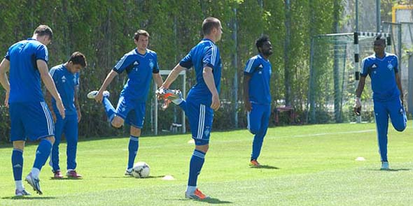 Размявшись и поработав с мячом, следующим занятием для динамовцев были игровые серии.
