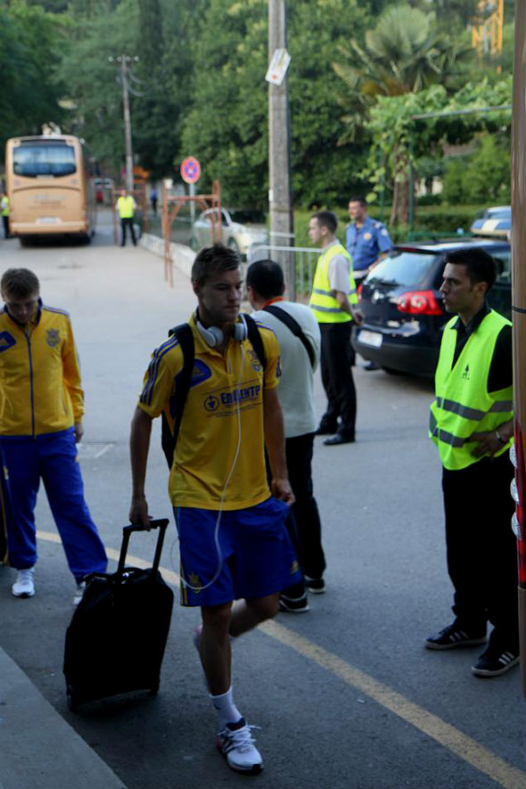 Положа руку на сердце, даже после победных матчей над Польшей и Молдовой в Черногорию ехалось с какой-то тревогой, а что если… «Будем играть и за себя, и за того парня. Едем только за победой». Подобное повторил практически каждый игрок команды, отвечая на вопрос об эпидемии травм в сборной. При этом выглядели ребята особенно сосредоточенными и серьезными. Ни тебе шуток-прибауток, ни развеселых карточных игр. По пути в Подгорицу, до которой из Киева около 2-х часов лету, кто-то, как Тимощук, Хачериди или Ярмоленко, слушал музыку. Кто-то, как Кравченко или Коноплянка, предпочел посмотреть кино, но все же большинство сборников предалось сну.