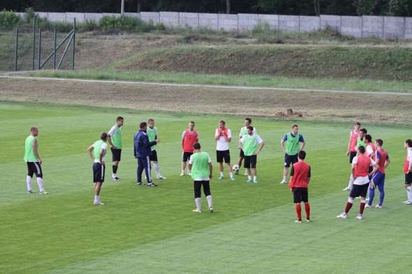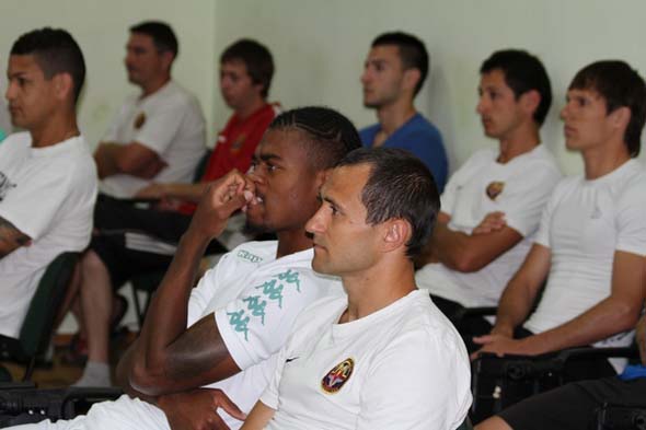 Знакомство команды и тренерского штаба продолжилось на одном из отлично подготовленных полей тренировочной базы. Втягивающее вечернее занятие, при относительной прохладной погоде, включило в себя пробежку, игру в квадрат и небольшой тренировочный спарринг на уменьшенного размера площадке. Интересно, что наряду с игроками приняли участие в «междусобойчике», не стесняясь подкатов и борьбы в рамках правил, Сергей Пучков и Константин Полищук. Нельзя не отметить, что в рабочий ритм «Металлург» вошел в хорошем настроении, не на шутку соскучившись по футболу за время отпуска.