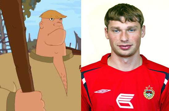 Продолжаем тему российского футбола. Испанский актер Леонардо Сбаралья, по крайней мере, в кинофильме «Интакто» (достаточно любопытном) очень похож на бомбардира пока что еще питерского Зенита Александра Кержакова.