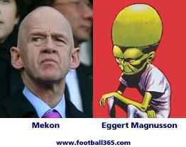 На самую, что ни на есть, закуску мы приведем новые творения от иностранных авторов – наших друзей из football365.com. Там сейчас кипит работа, в основном, над личностью Эггерта Магнуссона, но не только. Здорово похож на бородатого джедая Оби ван Кеноби Олаф Мелльберг. Сходство Бекхэма и Клинта Иствуда не кажется столь очевидным, а Джонатана Вудгейта поместили рядом и вовсе с каким-то страшным существом. Тарзан, ты что ли?