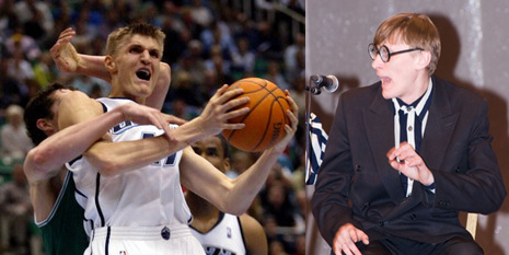 В завершение рубрики сходство несомненное и безоговорочное. Популярный баскетболист Андрей Кириленко просто аки брат-близнец похож на известного кавээнщика Дмитрия Никулина. Если вы являетесь поклонником этой забавы, то наверняка знаете этого забавного комика из Томска (команда Дети лейтенанта Шмидта). Ну а АК-47 вы знаете, не зависимо от того, являетесь вы поклонником баскетбола или нет – слишком высокого калибра сия звезда.