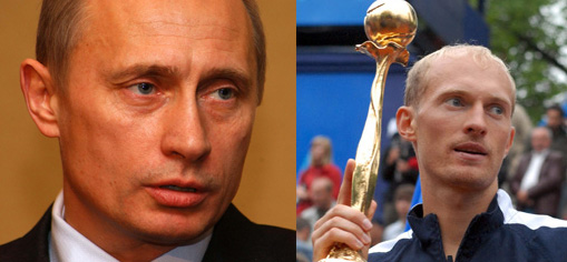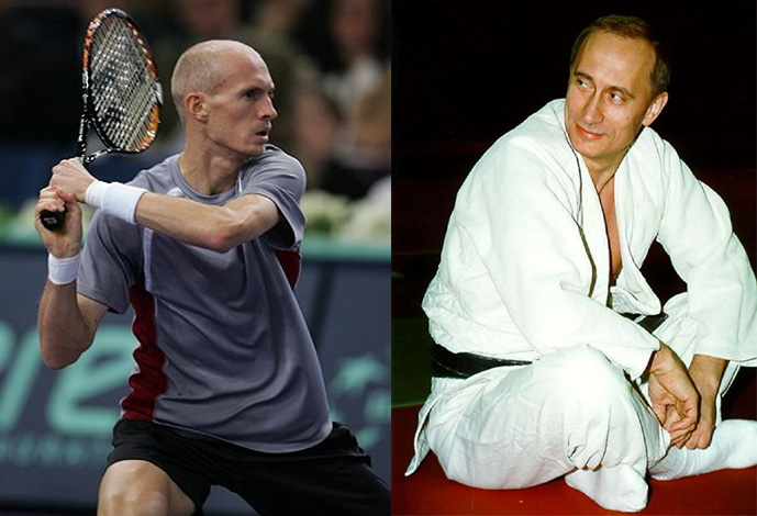 Посвятим победе российской теннисной сборной в Кубке Дэвиса следующие коллажи. Полузащитник запорожского Металлурга Дмитрий Михайленко (не так давно любимец киевских болельщиков) отдаленно напоминает Марат Сафина. А вот Николай Давыденко – лучший теннисист России в данный момент – на мой скромный взгляд существенно похож на самого Владимира Путина. Похож больше в жизни, чем на фотографиях – управляют государством и бегают по корту люди с разными выражениями лица.