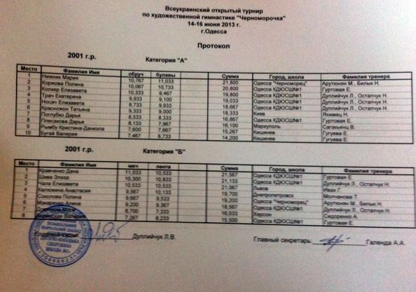 Итоги соревнований и прошедшего спортивного года подвела главный судья турнира и тренер КДЮСШ №1 Людмила Дуплийчук: - «Мы действительно этим турниром подвели итоги работы, проделанной нашими тренерами и воспитанницами за прошедший год. Нам пришлось нелегко, но вместе с тем это и радостно, что наш старт пользуется такой популярностью в стране. К нам едут, нас спрашивают о турнире еще за пол года до его начала. Что касается наших гимнасток, то на них стало смотреть намного интереснее, в виду того, что мы стали больше танцевать в упражнениях. Дети раскрываются по-новому, они становятся более артистичными и пластичными. Очень порадовали старшие гимнастки, у которых мастерство выросло. На них было приятно смотреть. Не обошлось, конечно, без каких-то потерь, неудач, огорчений, но без этого к сожалению не бывает. Этот год был напряженный, но очень плодотворный. И мы очень довольны своими гимнастками на выступлениях и на этом турнире, и на выездах, откуда наши дети не раз привозили награды и трофеи. В планах, как обычно, учебно- тренировочный сбор, отдых и снова работа. Мы должны показывать достойные результаты, чтобы занимать место в сборной области и представлять наш регион на всеукраинских соревнованиях».