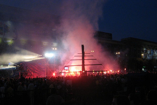 В городе в это время еще будет ходить метро - его работа продлена из-за праздника на площади Свободы. И радостная молодежь будет разъезжаться с этого праздника, вволю натанцевавшись под Потапа с Настей, "Би-2" и Софи Эллис-Бекстор, насмотревшись на лазерное и пиротехническое шоу с фейерверком на закуску.