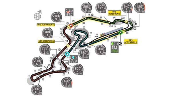 З одного боку місць для обгону на Нюрбургринзі небагато – це, насамперед, перший і тринадцятий повороти, але саме перед ними розташовані зони активації DRS, тож, мабуть, із 90% обгонів ми побачимо саме у цих двох найповільніших віражах траси. Траси, яка не надто вимоглива до техніки – двигуни хоч і використовуються на повну потужність близько 61% кола, але висота у 700 метрів (вище тільки бразильський Інтерлагос) над рівнем моря зменшує потужність і дозволить практично всім командам спокійно використовувати один із раніше вживаних моторів, гальма ж часом навіть недогріваються, адже серйозних зон гальмування тільки дві, та й аеродинамічні налаштування тут мають досить середні параметри.