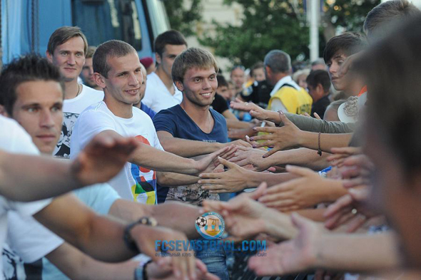 ФК Севастополь вместе с болельщикам отпраздновал повышение в классе.