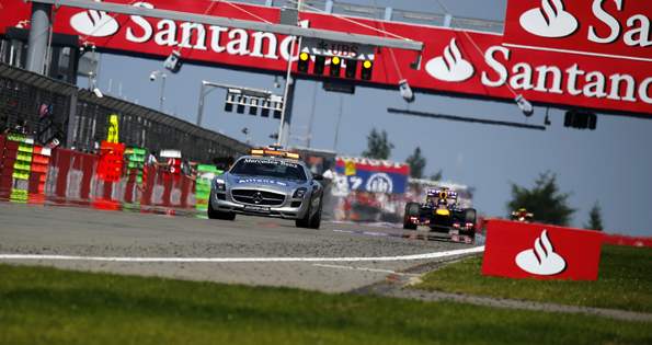 Чим менше кіл залишалося до завершення гонки, а Кімі залишався на комплекті гуми, отриманому під час виїзду сейфті-кар, тим більше закручувалася інтрига і якоїсь миті почало здаватися, що в Lotus ризикнуть їхати до кінця, тим більше, що падіння темпу у фіна не було катастрофічним, а Феттель скорочував відстань не так швидко, щоб розраховувати обігнати Ряйкконена до картатого прапора. На жаль, такої інтриги не вийшло – Кімі сам повідомив команді, що гума до кінця гонки не витримає, але короткий відрізок на м’яких шинах дозволив повернутися у боротьбу, от тільки тепер пілоти помінялися ролями й Себастіану треба було втриматися попереду, а Кімі мав атакувати практично на всі гроші, що він безсумнівно вміє робити дуже і дуже добре. Так що останні кола в Німеччині дуже нагадували фініш у Сільверстоуні – якби гонка тривала б на пару кіл більше, в обох випадках результати були б, напевно, іншими.