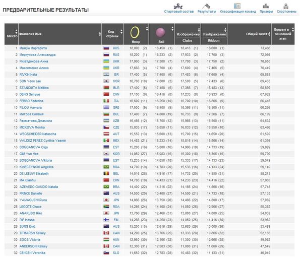 Лучшие 8 гимнасток в каждом виде получили возможность участвовать в финалах в отдельных видах.