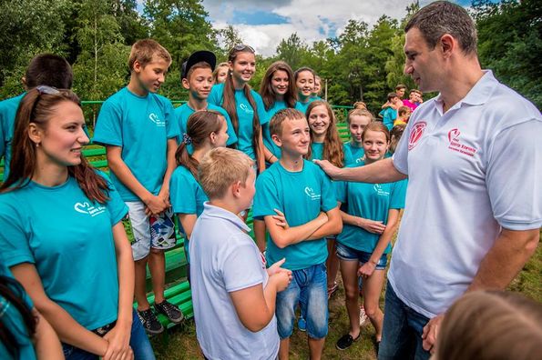 Чемпион мира в супертяжелом весе провел для детей зарядку, обстоятельно отвечал на разнообразные вопросы, а также пел и играл на гитаре. Впрочем, встречаться чаще с детьми у Кличко врядли получится, он контролирует деятельность лагеря, хотя общую организацию работы «Школы успеха» он доверил команде Фонда братьев Кличко.