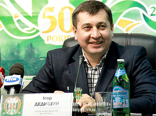 Ми зустрілися із Ігорем Дедишиним за кілька днів до першого туру чемпіонату України. Тем було безліч: нове обличчя «Карпат», новий тренер, нові гравці, старе керівництво, штрафи, скандали та причини провалу в останніх двох сезонах. До генерального директора «Карпат» у Львові ставляться по різному - хтось вважає його недостойним такої посади, хтось пов’язує із ним не лише провали, але й успіх трирічної давнини. Але за нього говорить лише один факт – при Дедишину «Карпати» щорічно на трансферах заробляли більше аніж витрачали. А це останні чотири роки. Чи згадаєте ви в Україні хоча б ще одну подібну команду?