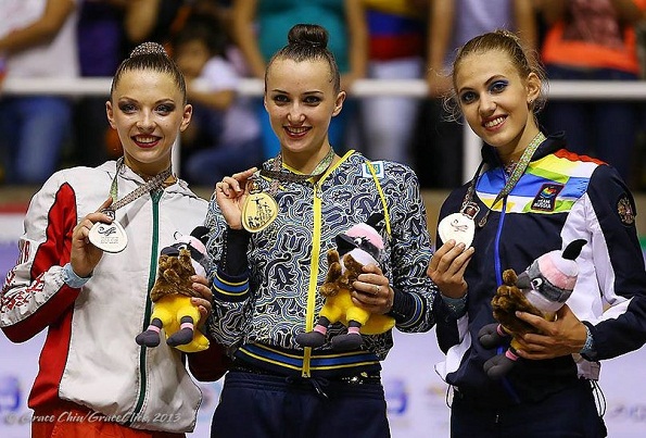 А вот наибольшее количество наград завоевали украинки! Анна Ризатдинова стала чемпионкой в упражнении с обручем и дважды серебряным призером (мяч, булавы). Алина Максименко стала двукратным бронзовым призером (мяч, булавы).