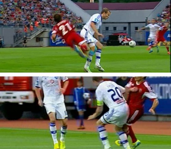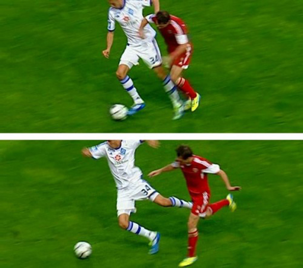 Для того, чтобы оценить, насколько претензии тренера «Динамо» обоснованы, мы разобрали большинство моментов этой встречи, которые, вероятно, вызвали нарекания Блохина. Так, по первому тайму мы выбрали абсолютно все моменты нарушений, кроме совсем рядовых.