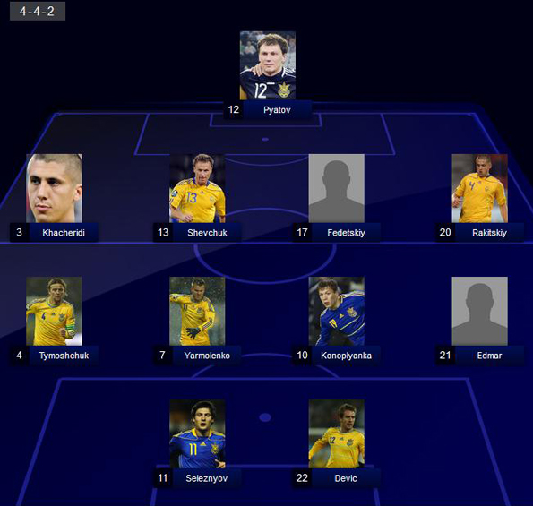 Хачериди – правый защитник, Шевчук – центральный, Коноплянка и Ярмоленко – опорная зона Украины