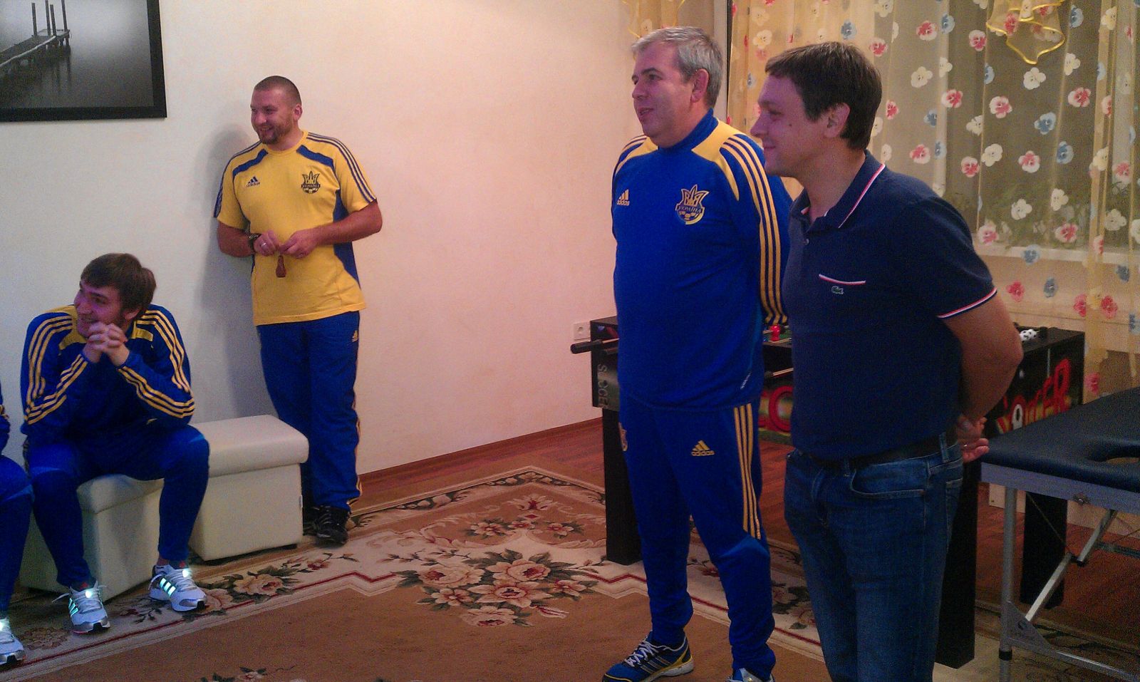 Что касается формирования тренерского штаба, то по сравнению с тем, какой был на отборочном турнире в Турции, то сейчас Евгению Рывкину в тренировочном процессе помогает Павел Пикалов, что, наверное, логично при многолетней совместной работе в «Локомотиве». Но, пожалуй, главное изменение и усиление – это новый врач команды Роман Жолобайлюк, который также работает в молодежной сборной Украины, возглавляемой Сергеем Ковальцом. На этот сбор Роман Жолобайлюк прибыл не с пустыми руками, а с мощным медицинским багажом, включающим в себя как различное оборудование, так и препараты для восстановления.