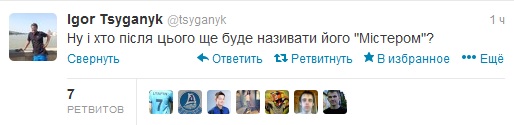 «Ну и кто после этого еще будет называть его «Мистером»?» – написал Цыганык в социальной сети.