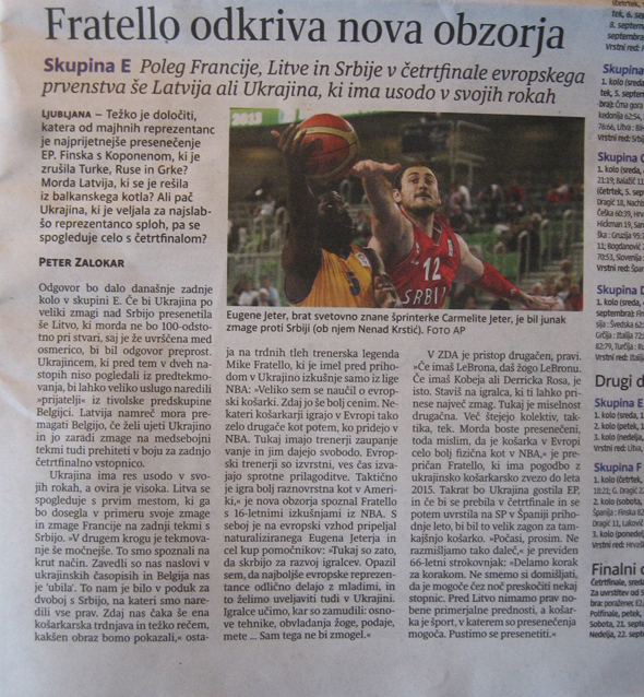 Фрателло відкриває нові горизонти – заголовок у сьогоднішній Delo.