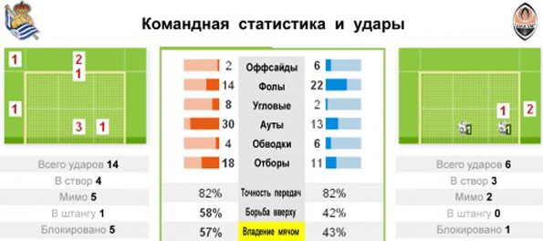 Это оказало решающее значение на характер игры как в первом тайме, так и в матче в целом. Инициатива во владении мячом перешла к «Сосьедаду», а розыгрыши «Шахтера» встали в прямую зависимость от не совсем удачных действий Адриано и его партнеров в игре головой. Верховые единоборства «Шахтер» проиграл в соотношении 58 на 42%, а Луис Адриано отметился самым низким числом передач среди всех игроков обоих команд. Причем, согласно данным uefa.com из 16 его пасов лишь 4 оказались точны.