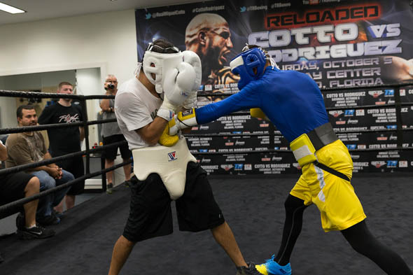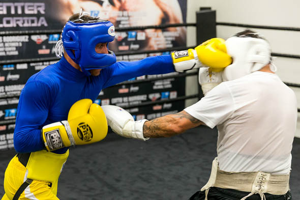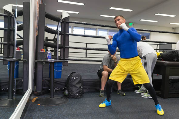 Двукратный олимпийский чемпион украинец Василий Ломаченко сейчас находится в США, где тренируется в зале Фредди Роуча Wild Card Gym. Напомним, что 12 октября в Лас-Вегасе Василий дебютирует в профессиональном боксе и встретится с мексиканцем Хосе Рамиресом. Этот бой состоится в рамках вечера бокса, в главном событии которого мексиканец Хуан Мануэль Маркес встретится с чемпионом мира в полусреднем весе по версии WBO американцем Тимоти Брэдли. Транслировать этот вечер будет телеканал HBO через систему платных трансляций (PPV).