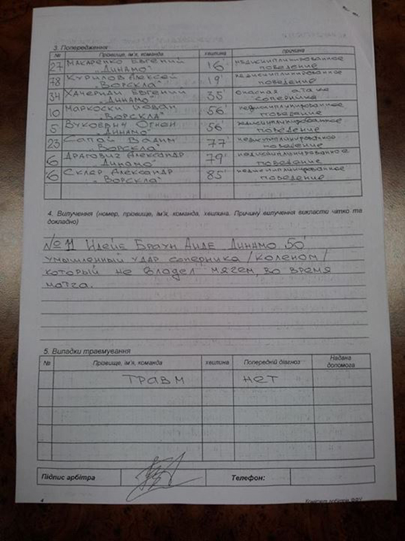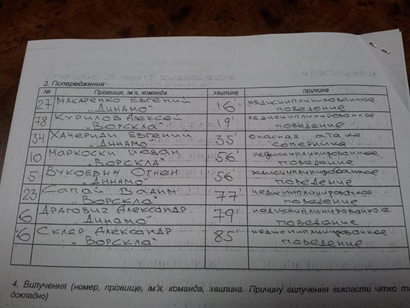 Кроме того, в перерыве матча администратор «Динамо» Александр Чубаров нецензурными выражениями оскорбил главного арбитра матча Виталия Годуляна. Сообщение об этом содержится и в протоколе матча.