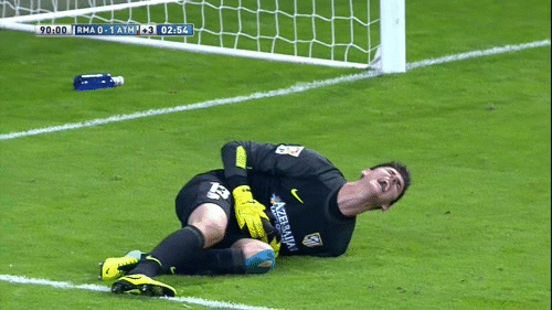 Тибо Куртуа был, пожалуй, самым неубедительным игроком «Атлетико» в матче. Зато очень убедительно корчился от боли. «Чужого» рожал что ли?