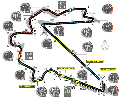 Дійсно, сама траса хоч і є «класичним» витвором Самі-знаєте-кого та його архітектурного бюро, але змушує пілотів добряче попрацювати починаючи з першої ж практики. І якщо на початку кола ми бачимо три прямі, сполучені повільними поворотами, які дозволяють вдало атакувати (що звісно має подобатися командам з двигунами Mercedes і Ferrari), то вже другий і третій сектори з їх швидкими та середньошвидкісними віражами – це вотчина диво-машини Едріана Ньюї, яка під управлінням триразового чемпіона неухильно прямує до своїх чергових звершень.