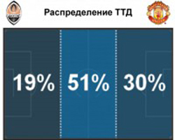 Итак, после первого родственного признака – ставку на неспешный розыгрыш и контроль мяча – 56% у «Юнайтед» всего и 52% - у «Шахтера» (в ЛЧ, по данным uefa.com) переходим к рассмотрению тактических построений команд в прошедшем матче.