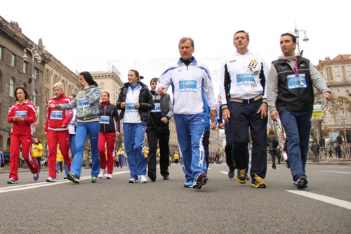 Разом з киянами та гостями столиці в колону учасників стали Міністр молоді та спорту України Равіль Сафіуллін, заступник голови Київської міської державної адміністрації Віктор Корж та інші високопосадовці.