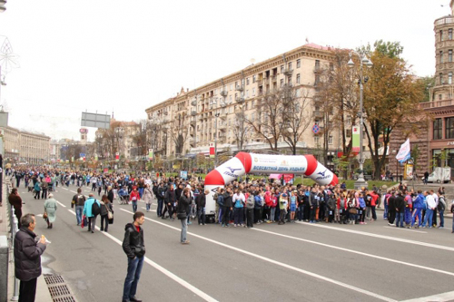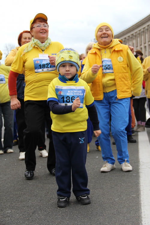 На перший Всесвітній день ходьби на Хрещатик вийшли понад 3000 киян та гостей міста, аби родинному колі, колі друзів та однодумців пройтися центральними вулицями столиці за спеціально розробленим маршрутом довжиною у 4,3 км