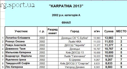 «Карпатія - 2013»: ПРОТОКОЛИ - ОБНОВЛЕНО