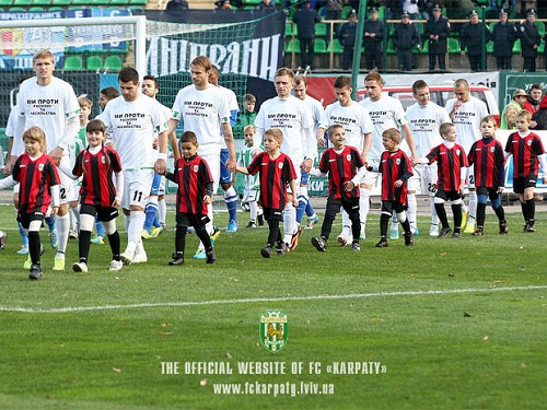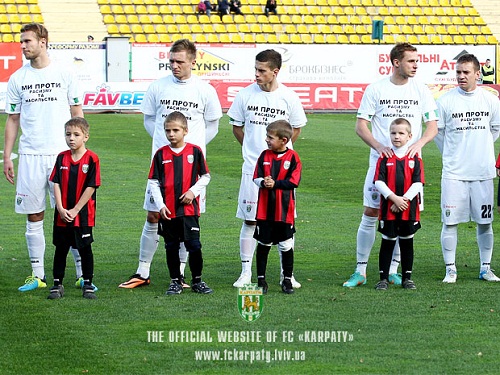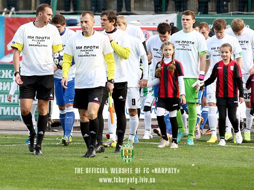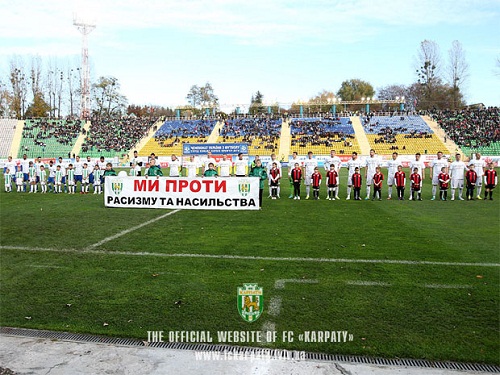 Перед початком матчу 13-го туру чемпіонату України з футболу між «Карпатами» та «Дніпром» львівський клуб звернувся до футбольної громадськості із закликом «Ми проти расизму та насильства!»