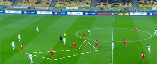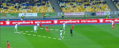 Вполне понятно, что такой отлаженный в любом состоянии «Динамо» элемент, как групповой прессинг, Блохин использует как основное средство организации игры в обороне. В современном футболе это практически норма, за исключением команд, которые настолько организованы, что могут позволить себе играть позиционно, передавать соперника между партнерами и линиями.