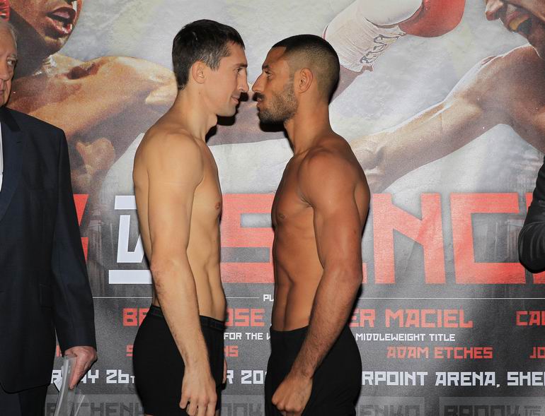 Полусредневесы Вячеслав Сенченко (33-1, 22 KO) и Келл Брук (30-0, 20 КО) прошли официальную процедуру взвешивания накануне поединка 26 октября на арене Motorpoint в Шеффилде (Англия).