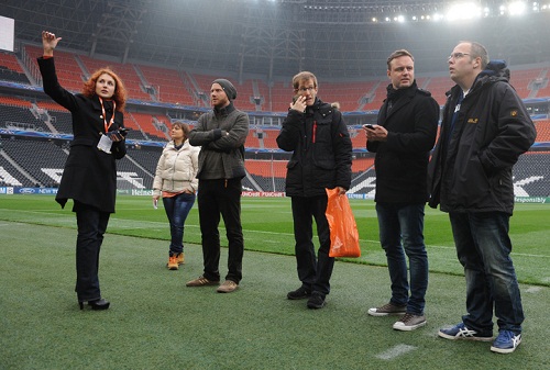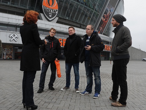 5 ноября в первой половине дня на «Донбасс Арену» пожаловали гости. Группа немецких журналистов, прилетевших в Донецк специально для освещения игры Лиги чемпионов «Шахтер» – «Байер», были приглашены на прогулку по стадиону.