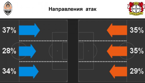 Так что в данной графе можно согласиться со словами Луческу. Тем более любопытно отметить, что в противостоянии флангов Бернарда и Донати произошла заметная часть борьбы матча – со стороны «Шахтера» тут было проведено 37%, со стороны «Байера» - 35% атак. Это больше, чем любые другие сочетания направлений.