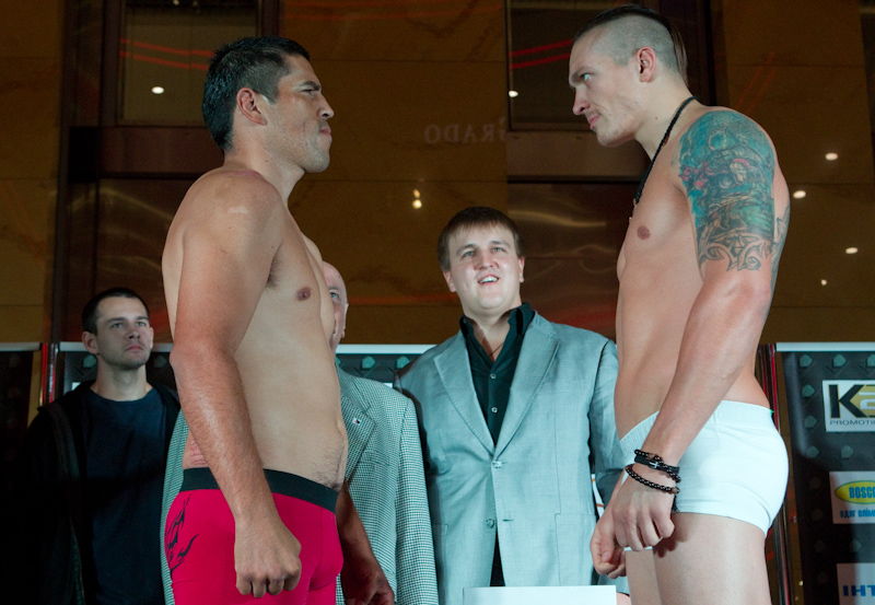 В другом главном бою вечера профдебютант Александр Усик показал на весах отметку в 90,95 кг, тогда как его соперник, мексиканец Фелипе Ромеро (16-7-1, 11 КО), потянул на 91 кг ровно.