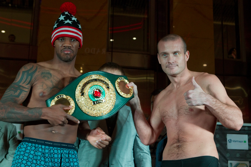 Состоялась церемония официального взвешивания накануне турнира 9 ноября в киевском Дворце спорта. Все участники предстоящего боксерского вечера без проблем с первой попытки уложились в отведенные весовые категории. Так, в главном противостоянии турнира, на кону которого будет вакантный титул интернационального чемпиона IBO в полутяжелом весе, Вячеслав Узелков (29-3, 18 КО) и Джейдон Кодрингтон (21-3, 17 КО) показали на весах 79,3 кг и 79,15 кг соответственно.