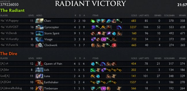 Пока Alliance меняли свои линии для того, чтобы нейтрализовать Storm Spirit в миде, Na`Vi совершили удачный ганг на нижней линии, который позволил им получить несколько невероятных убийств на Gyrocopter. Это дало украинской команде хорошее преимущество в начальной игре.