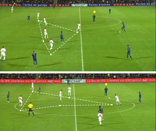 Разумеется, для достижения успеха все это сочеталось с предельной дисциплиной в обороне. Ведь попытки Рибери, Пайе, Санья выполнять забегания в ответе на эти передачи так или иначе осуществлялись. Но игра в обороне такого рода по сложности не идет ни в какое сравнение с угрозой, которую несут комбинационные действия французов уже на входе в штрафную.