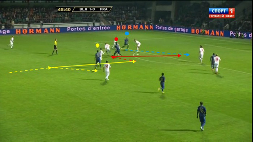 Но, к сожалению, в составе сборной Украины нет игроков, склонных к такой манере игры. Во всяком случае демонстрирующих в ней свои наилучшие стороны. Нет у нас и диспетчеров центра поля уровня Глеба и Путило. Поэтому для нас, вероятно, такой вариант построения позиционной атаки останется неприемлемым. В то же время в действиях на завершении, когда так или иначе возникнет возможность организовать охватывающий розыгрыш вокруг штрафной французов – тогда и мы можем применять и такую манеру. Но лишь как часть игры, завершающуюся например кроссами в штрафную площадку.