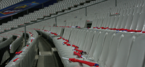 На стадионе каждому французскому болельщику на место положили большой национальный флаг.